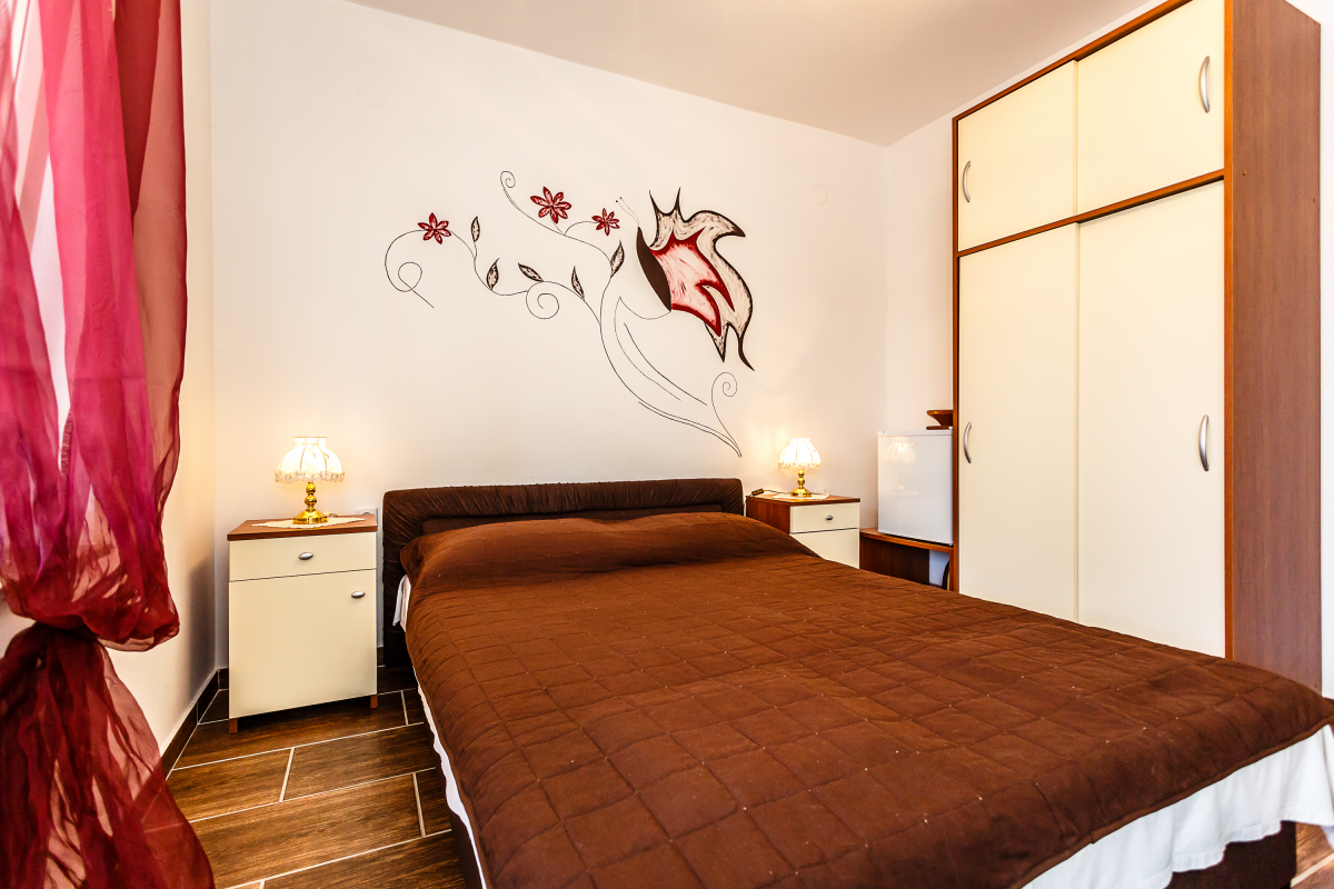 Soba 1 - S1 pruža sjmeštaj za 2 osobe jer je opremljena sa bračnim krevetom. Gostima stoji na raspolaganju kuhalo za vodu i mini bar s malim odjeljkom za zamrzavanje. Soba posjeduje svoju vlastitu kupaonu s tušem a ručnici su dostupni na zahtjev. Ako ne želite propustiti TV program na odmoru, satelitska TV i bežični pristup internetu dostupni su u Vam u sobi.