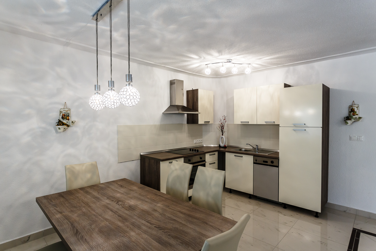 Apartman Intimo može primiti 4 – 6 osoba u dvije odvojene spavaće sobe (jedan bračni krevet i dva odvojena kreveta) i dnevnom boravku (kauč na razvlaćenje). Ima potpuno opremljenu kuhinju s štednjakom, pećnicom, hladnjakom, zamrzivačem, mikrovalnom pećnicom, aparatom za kavu, perilicom posuđa, posuđem i blagovaonicom.