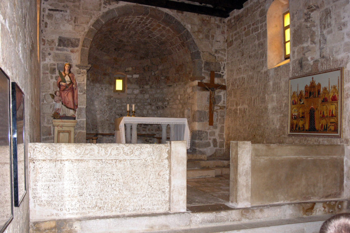 It was in the small church in Jurandvor where the most important Croatian proof of literacy was found - Bašćanska ploča. It is the stone plate from around the year 1100 mentioning the name of king Zvonimir from the 11th century in the Slavic Glagolitic script. The Glagolitic script developed in the 9th