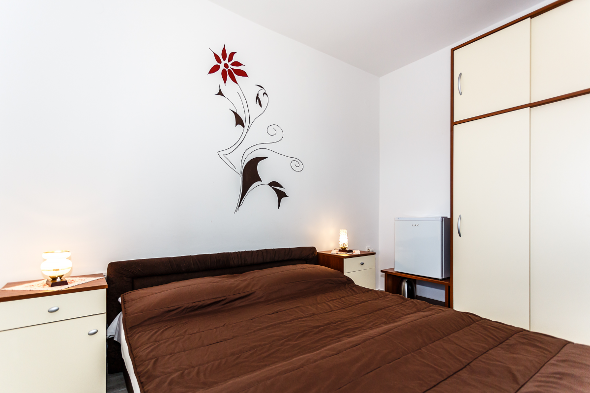 Room 2 - S2 can welcome 2 people since it is equipped with one double bed. Guests have at their disposal an electric kettle and a mini bar with a small freezer. There is a bathroom with shower and towels are available on request. If you don’t want to miss any of the TV shows while on holiday, there is a satellite TV across from bed and Wi-Fi network covering the entire room.